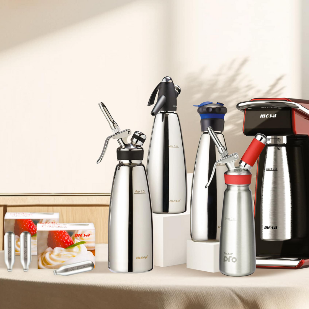 Official distributor of premium brands Mosa and Liss. We offer the complete range of professional N2O chargers and cream whippers, trusted by leading businesses across Europe. Available in bulk quantities with competitive wholesale pricing.